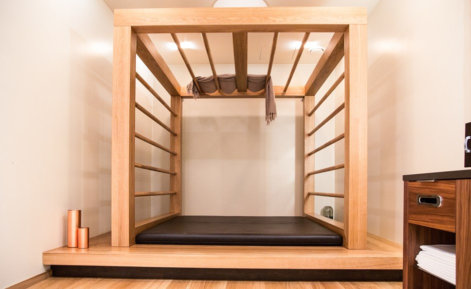 Aquarius Spa og Velværesenter - Kolbotn I.nr.: 50443 - Fil: bilde-1-aquarius-vi0a0361 Bur for Thai massasje. Utført i eik heltre med kraftig omramming og rundstokker. Design:Thermarium Foto:Krystian Gregorczyk Kunde:Idema AS Forrige Tilbake Neste