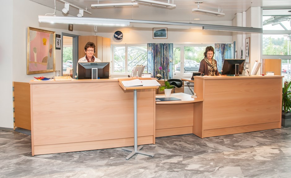 Fylkes Hus - Steinkjer I.nr.: 41459 - Fil:BSC_2740.jpg Enkel skranke med 2 hev/senk arbeidsplasser. Utførelse i bøk finer i fronter og bøk laminat i bordplater og diskplater. Design:Lium Foto:Johan Martin Lium Kunde:Hustad Møbler AS, Steinkjer Forrige Tilbake Neste