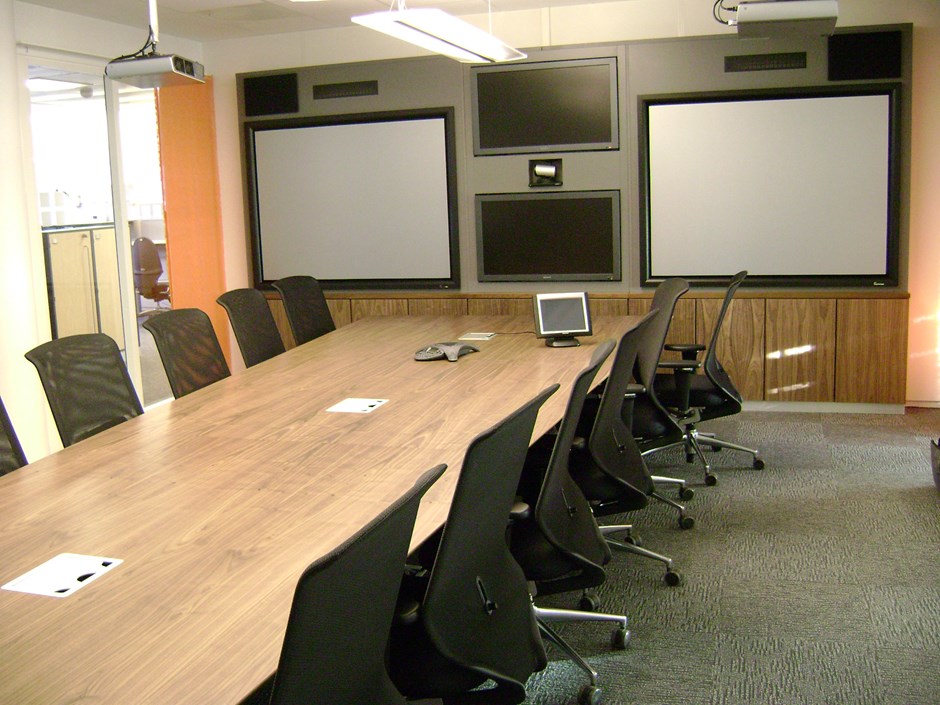 AV-vegg med skapinnredning. Komplett mediavegg med skapinnredning og møtebord. Design:OLM/Kunde Forrige Tilbake Neste