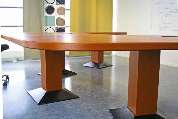 0392 Konferansebord. Søyleben med inntaksluker for kabler. Det er mulighet for kabelinntak både i metallsokkel og selve søylen. Design:OLM Forrige Tilbake Neste
