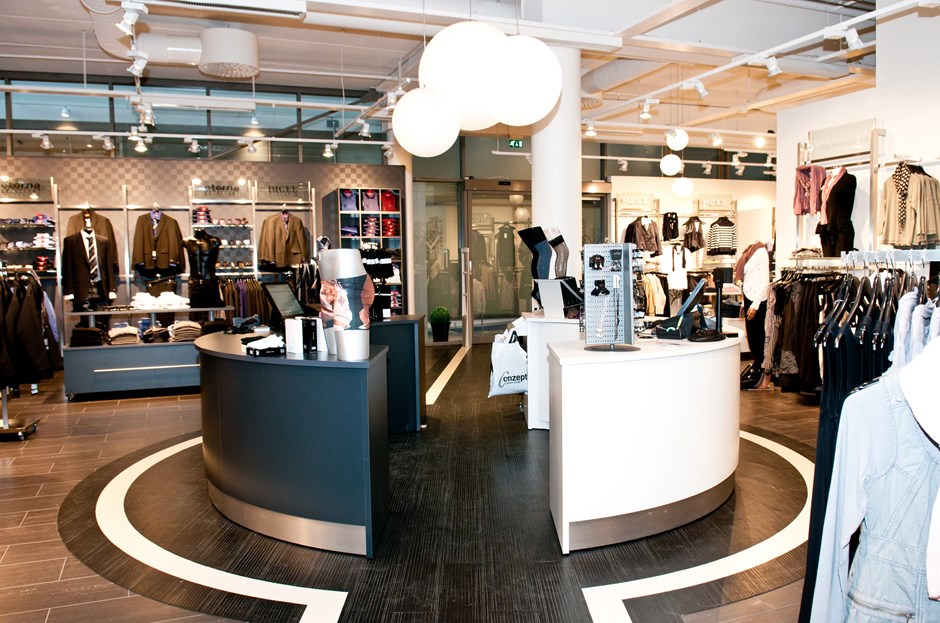 40197 9671 Skranke i klessbutikk Salgsskranke i butikk bestående av to buede elementer som danner deler av en sirkel. En i hvit Formica K-1040 og en i mørk grå F-2297. Skranken har innredning med skap, hyller og skuffer. Design:OLM/Kunde Forrige Tilbake Neste