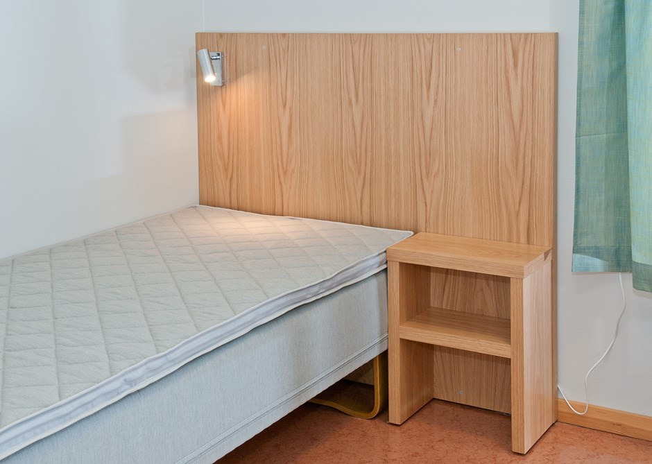 37190 Sengegavl med nattbord. Enkelt nattbord i eik for institusjon med sengegavl. Design:OLM/Kunde Forrige Tilbake Neste