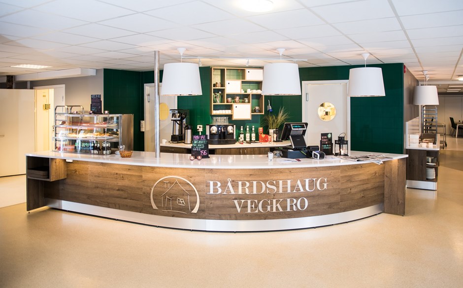 I høst leverte vi ny innredning til Bårdshaug Vegkro på Bårdshaug/Orkdal. Vi leverte hoveddisken, buffedisk og forskjellige reoler og skap. Alt var ikke komplett når vi tok dette bildet, så vi kommer med flere bilder senere.