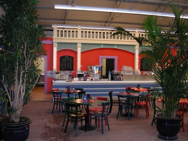 0024 Dekorinnredning på kafeteria i butikksenter. Utført i fargelakkert MDF-plate. Forrige Tilbake Neste