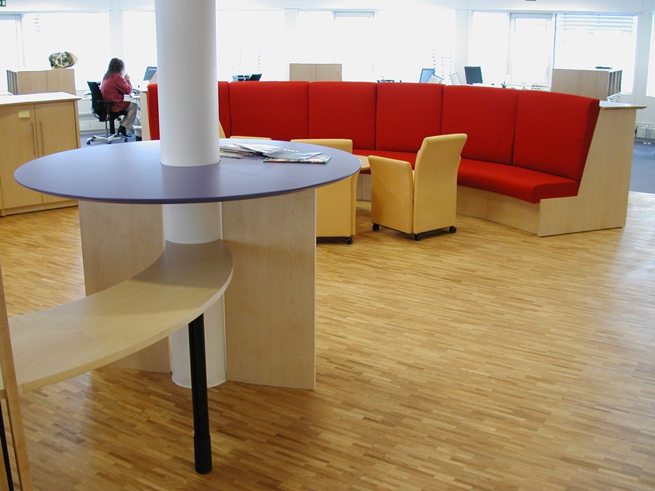 25082 - 9652 Kaffebar. Plate i fargelakkert MDF. Opphengt på søyle. Design:OLM/Kunde Forrige Tilbake Neste