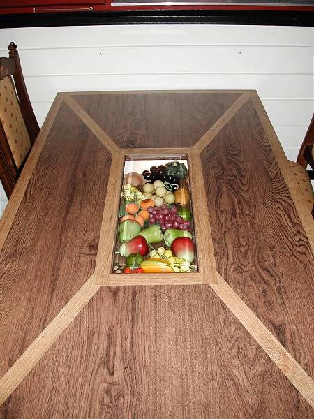 3200 Bord for restaurant/kro. Underliggende dekorrom. Utført i to typer høytrykkslaminat - intasjia. Nedfelt glassplate med underliggende rom for sesongpreget dekor. Meget virkningsfullt! Design:OLM/kunde. Forrige Tilbake Neste