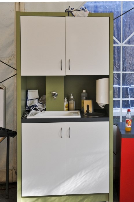 9199 Stasjon for renhold. Benk med vask. Rennebumartnan, benk med vask og diverse oppbevaring for renhold. Design:OLM/Kunde Forrige Tilbake Neste