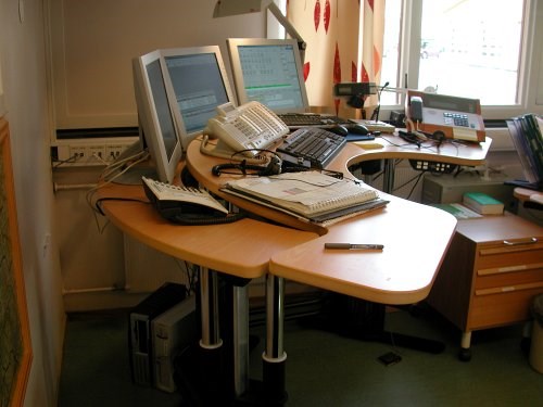 Bord i AMK-sentral. Bord tilpasset bruk ved AMK-sentral. Todelt plate hvorav fremre del er elektrisk tiltbar. Elektrisk hev senk på hele bordet. Kan skreddersys på mål og form. Design:OLM Forrige Tilbake Neste