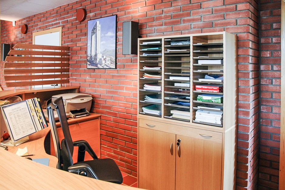 4705 Posthylle i eik. Posthylle i eik med sorte hyller i metall. Uttrekkshylle for sortering av posten. Design:OLM/Kunde Forrige Tilbake Neste