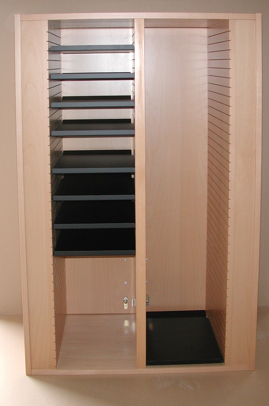 0711 Postreol med skyvedører Skap for posthyller med dører som skyves inn på sida. Slagdør/skyvdør. Design:OLM/Kunde Forrige Tilbake Neste