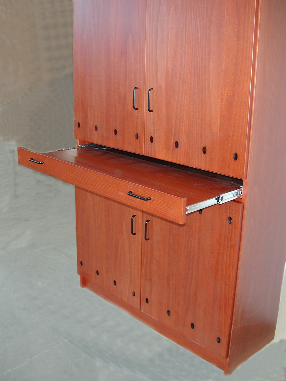 1881 Post-sorteringsskap. Overskap med 20 rom. Utrekkshylle. Underskap med regulerbare hyller. Skreddersyes etter kundens ønsker. Design:Kunde/OLM Forrige Tilbake Neste
