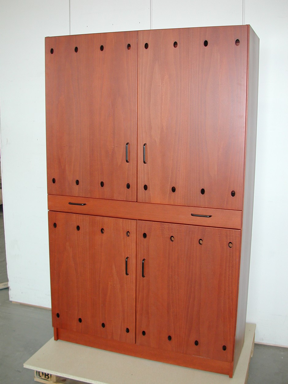 1886 Post-sorteringsskap. Spalte for opptrekk av løpende bane til printer. Arkivhyller for papir. Skreddersyes etter kundens ønsker. Design:OLM/kunde. Forrige Tilbake Neste