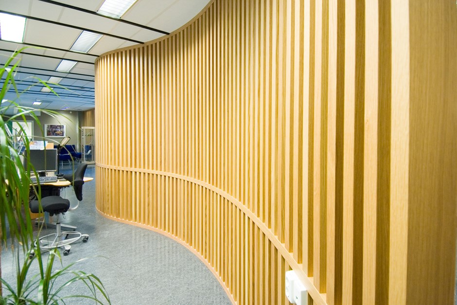 33181 9092 Buet vegg i eik Veggelement i eik som skillevegg i bibliotek. Design:OLM/Kunde Forrige Tilbake Neste