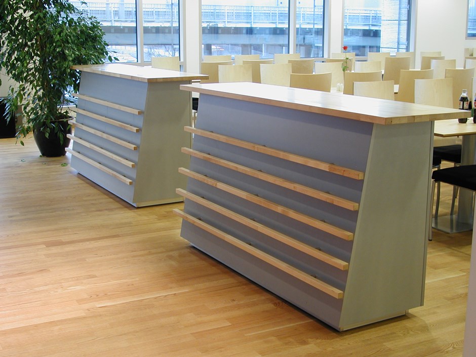 Utført i grå laminat og bøk heltre.