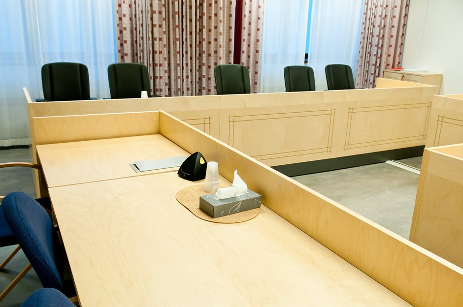 36546 9430 Rettssal 5 Fylkesnevnda Oslo Rettssalsmøbler utført i bjørk. Flere av bordene har el hev/senk samt nedfelt bokser for el tele og data. Det er medlevert skap for oppbevaring. Design:OLM/Kunde Forrige Tilbake Neste