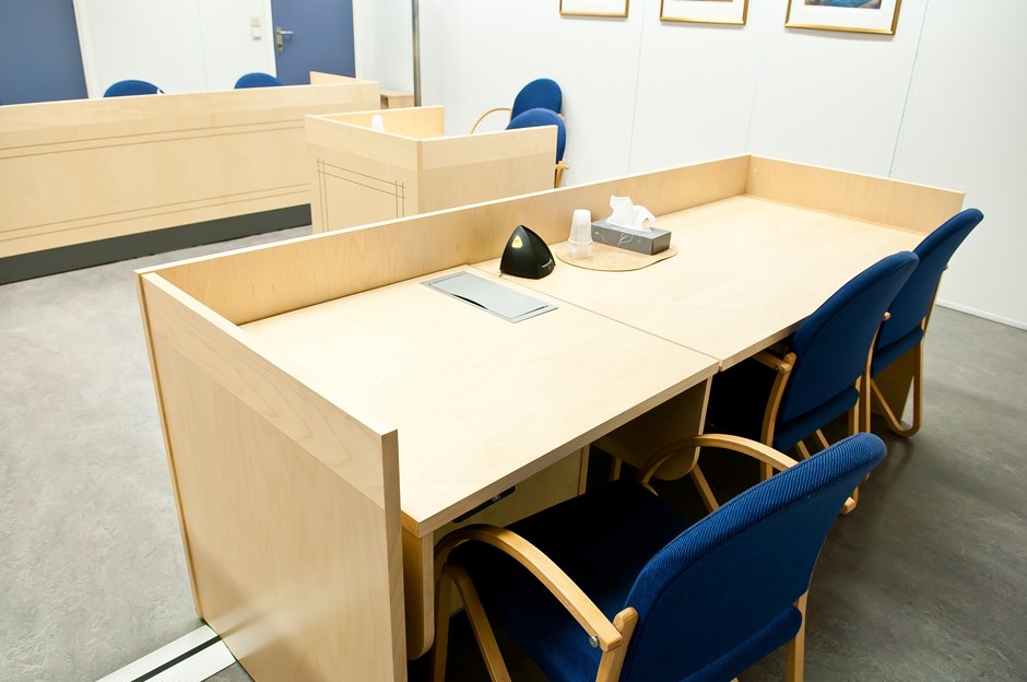 36546 9432 Rettssal 5 Fylkesnevnda Oslo Rettssalsmøbler utført i bjørk. Flere av bordene har el hev/senk samt nedfelt bokser for el tele og data. Det er medlevert skap for oppbevaring. Design:LIUM/Kunde Forrige Tilbake Neste