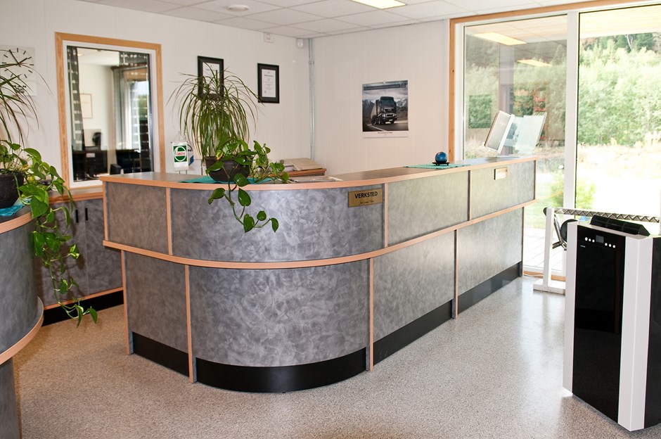 NT Man Last & Buss AS - Steinkjer I.nr.: 35226 - Fil esc-3645-copy Kundemottak bilfirma. Ekspedisjon for delelager og verkstedkontor. Høytrykkslaminat K-5818 med bøk PVC list. Design:Lium Foto:Johan Martin Lium Kunde:Kontordesign AS Forrige Tilbake Neste