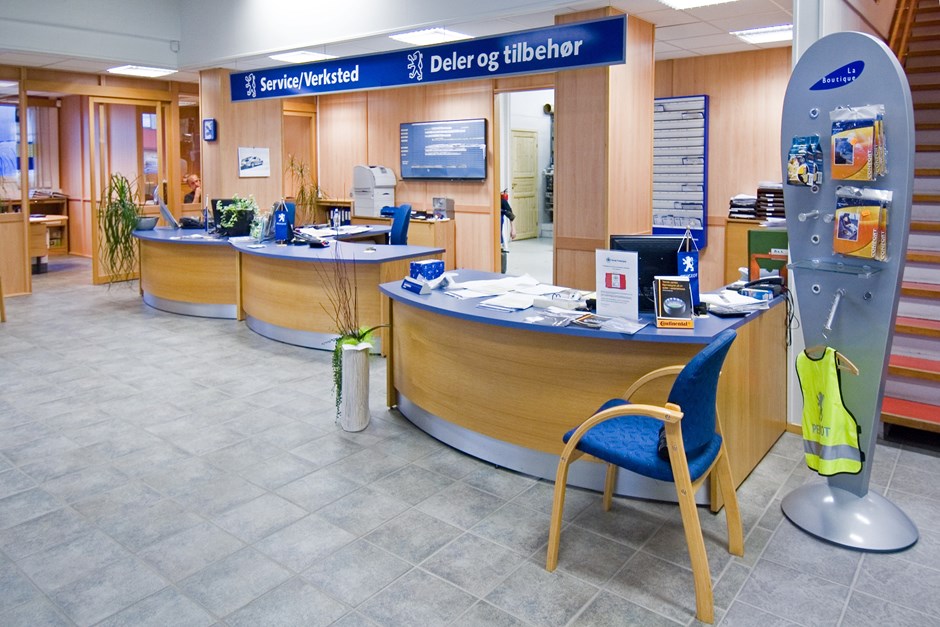 Prøven Bil AS - Verdal I.nr.: 30677 - Fil: _DSC9104_edited-1 Tre skanker i kundemottak utført i eik finer og høytrykkslaminat PP-5687UN på arbeidsplater og avlastningsplater. Avlasningplate med reoler under. Sokkel i M-2022. Design:Lium Foto:Johan Martin Lium Kunde:Kontordesign AS Forrige Tilbake Neste