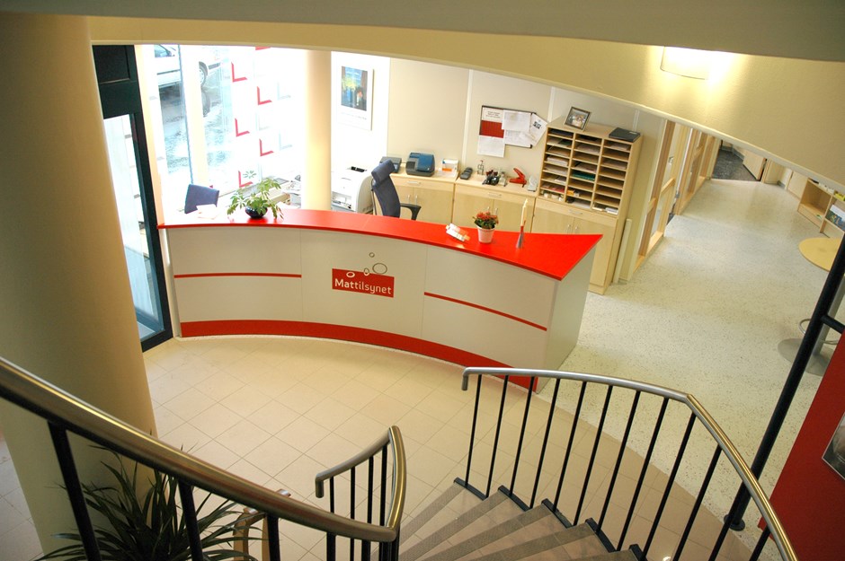 Resepsjonskranke i buet form utført i laminat.