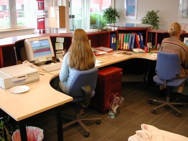 Resepsjonsskranke Sentralbordfunksjon og to gode dataarbeidsplasser. Design:Helene Hansen Ystgaard - Arkipel Interiørdesign AS Forrige Tilbake Neste