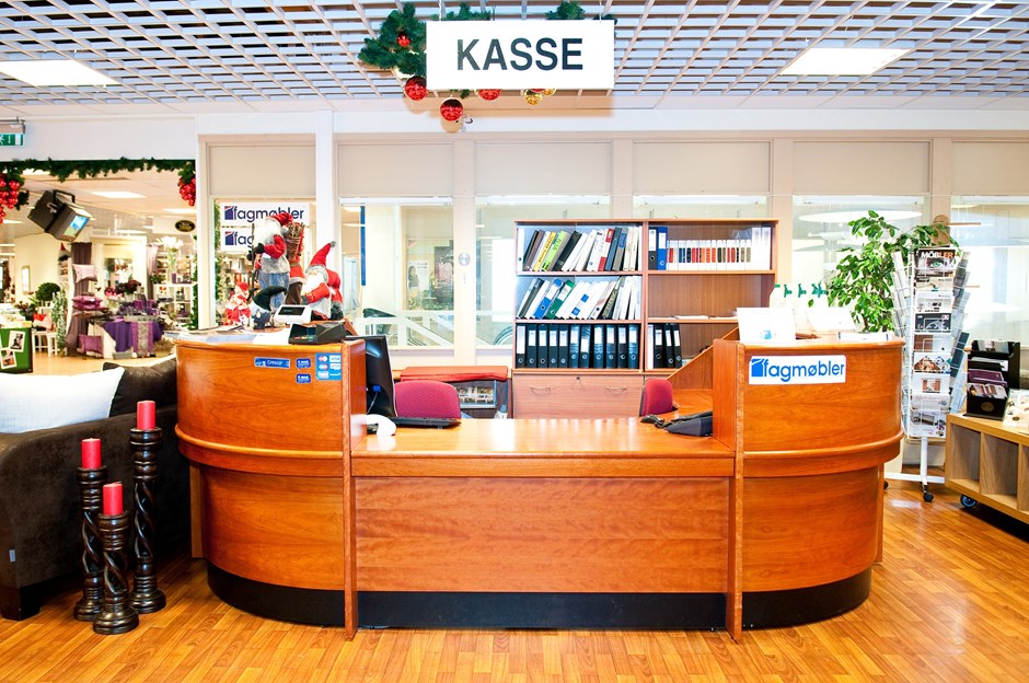 Kundemottak Skranke for kundemottak i butikk. Kirsbærbeis på front og plater med svart sokkel. Design:Kunde/OLM Forrige Tilbake Neste