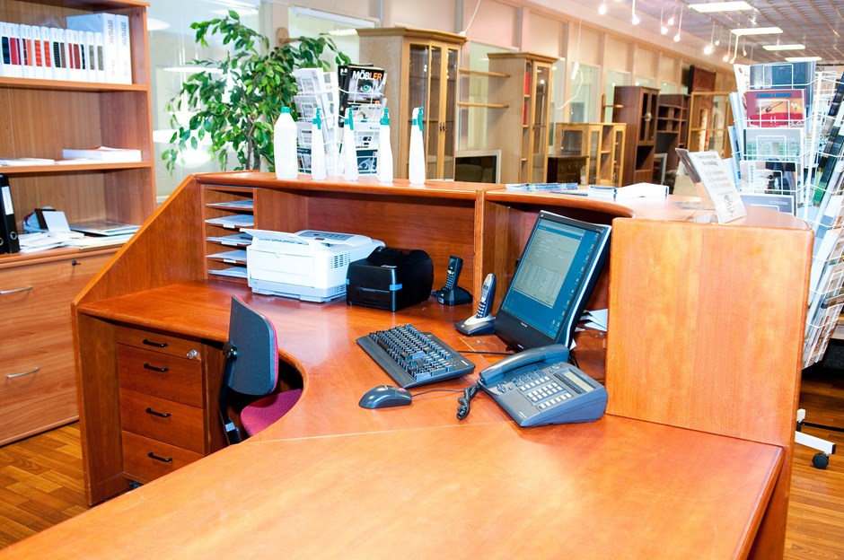 Kundemottak Skranke for kundemottak i butikk. Kirsbærbeis på front og plater med svart sokkel. Design:Kunde/OLM Forrige Tilbake Neste