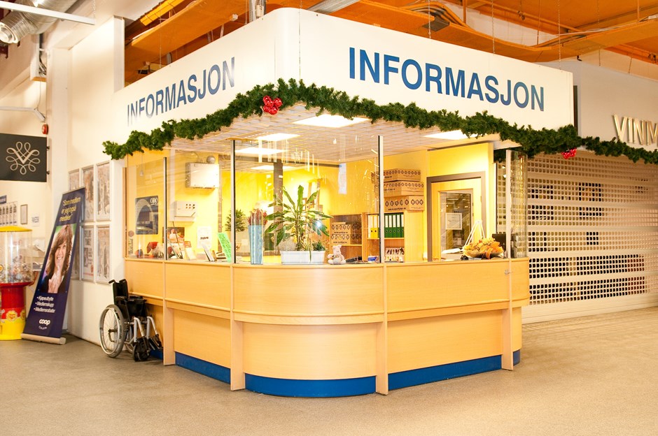 Informasjonsskranke butikk En "OLM" skranke brukt som infopunkt i butikk. Utført i bøk med blå laminat i sokkel. Design:Kunde/OLM Forrige Tilbake Neste