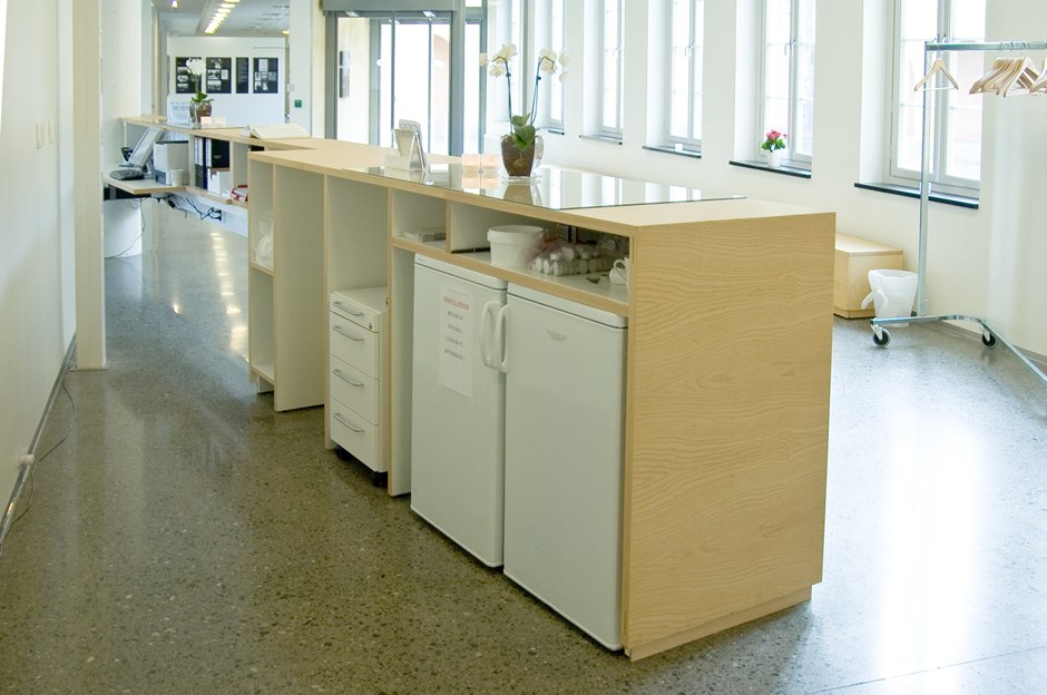 32023 - 3353 Resepsjonsskranke Skranke på 9270mm med 6500 mm i friluft! Utførelse i ask. Design:Siv.ark MNAL Atle Aas/OLM Forrige Tilbake Neste