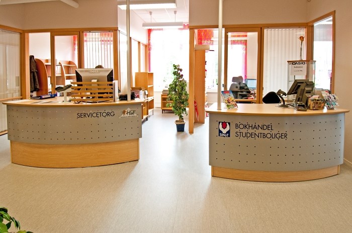 35380/82 4723 Resepsjon Ekspedisjon for studenter. Skranke med hev/senk og perforert grå lakkert front. Bjørklaminat i plate og nedre front, samt vanger. Design:Kunde/OLM Forrige Tilbake Neste