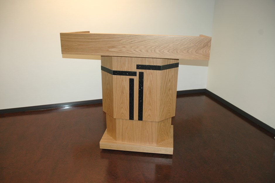 Talerstol med el hev/senk. Utført i eik med dekor i stein. Kan også leveres uten dekor. Kan leveres med hjul Design:Helene Ystgaard Forrige Tilbake Neste