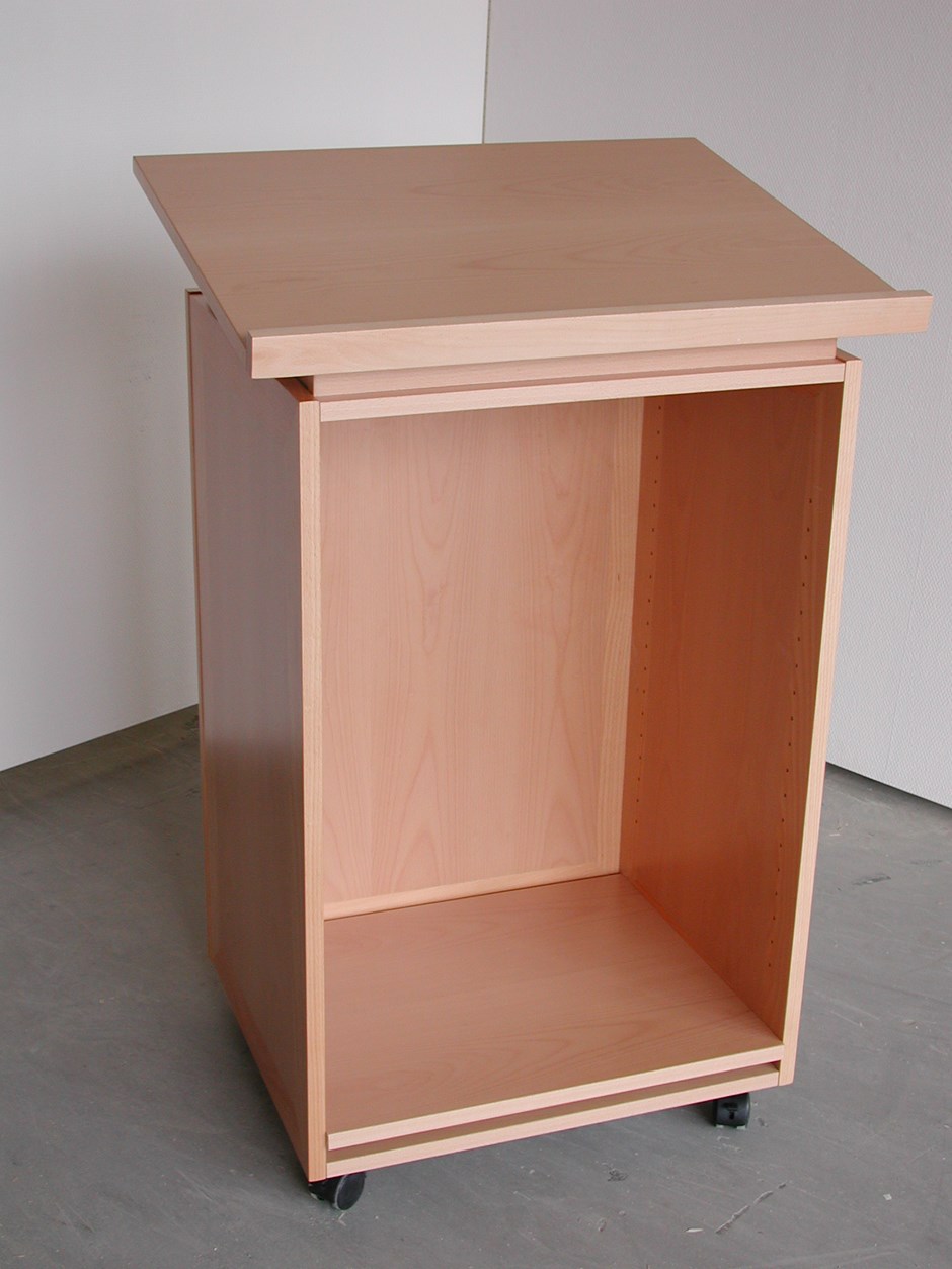 Talerstol med skråplate. Vist i bøk men leveres i ønsket treslag eller farge. Design:OLM/Kunde Forrige Tilbake Neste