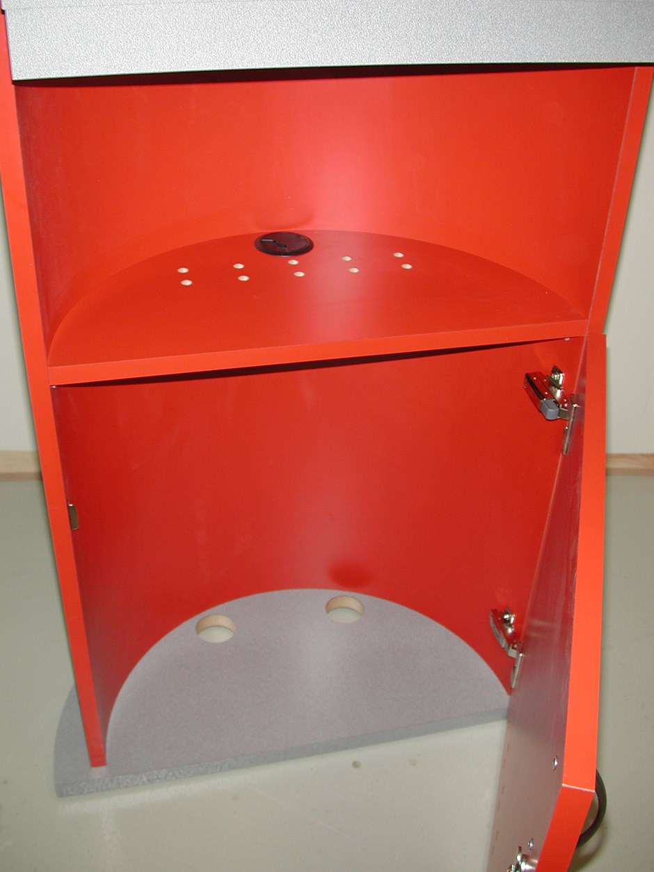 33286 Talerstol/"kundeøy" med tastaturhylle.Ventilert rom for PC. Overflatebelegg: Høytrykkslaminat. Grå:F-7508 Rød:F-6902 Farge etter ønske. Forrige Tilbake Neste