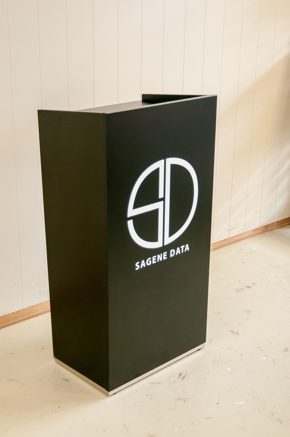 Talerstol utført med Formica høytrykkslaminat sort F-2253 Diamond Black. Sokkel belagt med rustfritt stål. Låsbare hjul.
