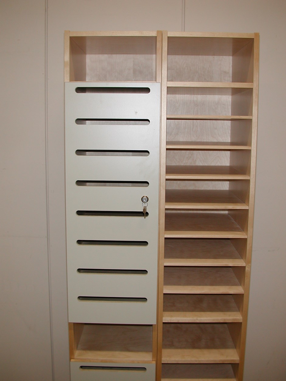 Studentreol. Reol for innlevering av besvarelser. Låsbare dører. Design:OLM/kunde. Forrige Tilbake Neste