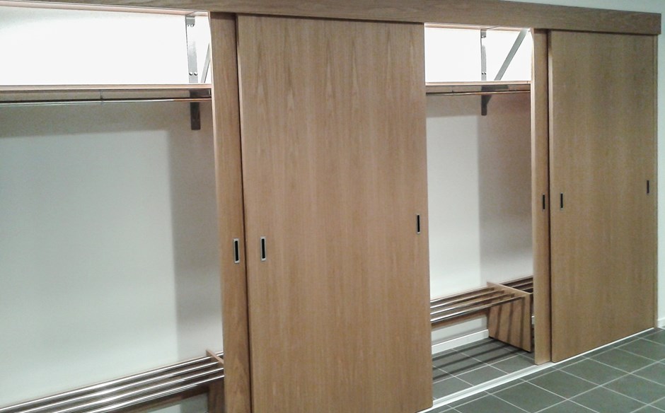 Strømsveien 96 - Oslo I.nr.: 52364-B - Fil: bilde-1-20161115_163112-copy Til et firma i Oslo leverte vi gjennom vår samarbeidspartner 4 store garderobeskap med skyvedører og skohyller i bunnen. Skap og dører er utført i eik finer. Design:Kunde/Lium Foto:Idema AS Kunde:Idema AS Forrige Tilbake Neste