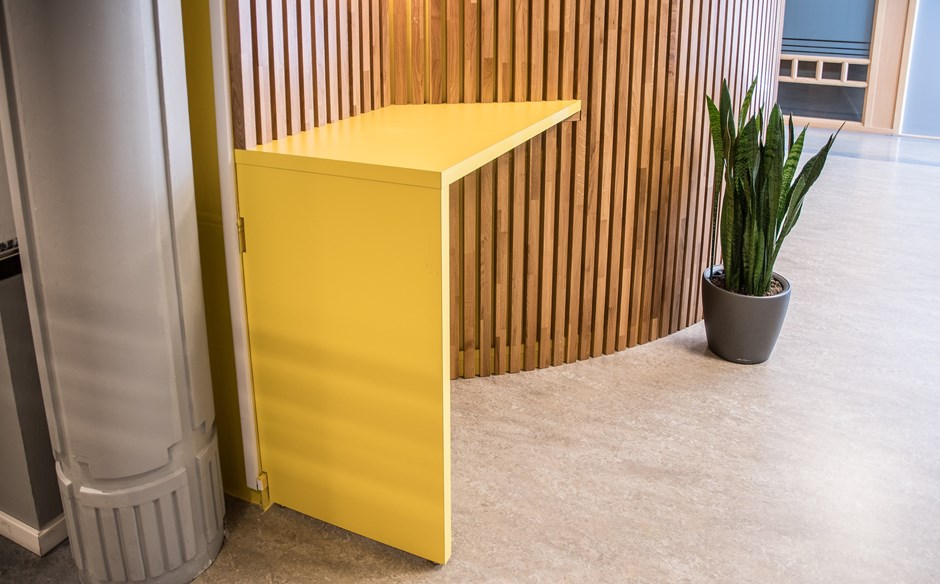 Sintef - Trondheim I.nr.: 50367 - Fil: bilde-3-dsc_6522-copy På hver ytterside av veggen ble det tilpasset barbord utført i Formica laminat F-1485. Design:Kunde/Lium Foto:Johan Martin Lium Kunde:Lindbak AS Forrige Tilbake Neste