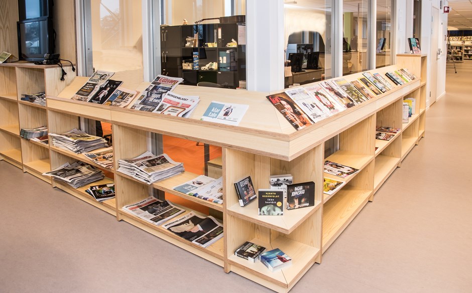 Kulturtribunen Trondheim I.nr.: 52274 - Fil: bilde-5-dsc_6401-copy Utenfor kontoret har vi levert en hjørneløsning på bok-/tidsskriftsreol. Design:tegn_3 Foto:Johan Martin Lium Kunde:Fagerhaug & Olstad AS Forrige Tilbake Neste
