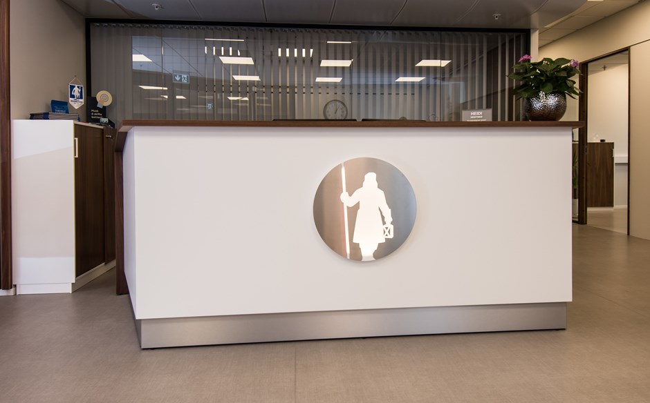 Orkla Gjensidige Orkanger I.nr.: 51902 - Fil: bilde-3-dsc_6217-copy Gjensidiges logo er utført i rustfritt stål der vekteren er laserutskjært av Rupro AS. På baksida er det lagt inn hvit plexiplate og LED-bånd for bakbelysning. Design:Kunde/Lium Foto:Johan Martin Lium Kunde:Kontorplan AS Filter Hev/senk, Logoer Forrige Tilbake Neste